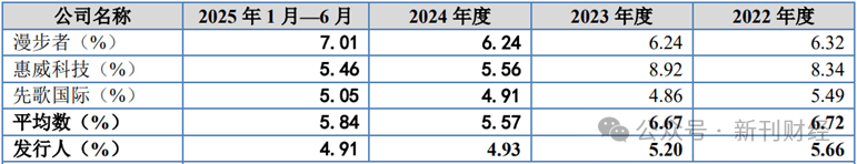 海菲曼“轻研发却重营销”,在各类电商平台、社交媒体和短视频平台投入大量资金进行广告推广。报告期内,海菲曼的销售费用率因此显著高于其他可比公司,分别为19.75%、18.85%、19.99%和20.43%。