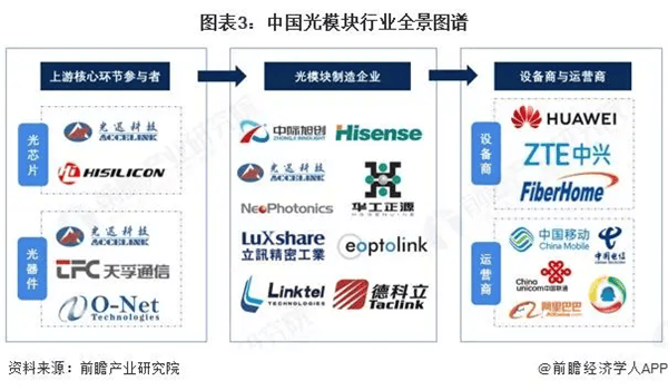 光模块行业的上游主要是光器件、光芯片、电芯片、PCB和结构件的制造商以及光模块封装及测试设备供应商;下游则主要是通信设备制造商,光模块应用的电信设备与数通设备主要应用于5G、光纤宽带、数据中心、消费电子和自动驾驶等领域。